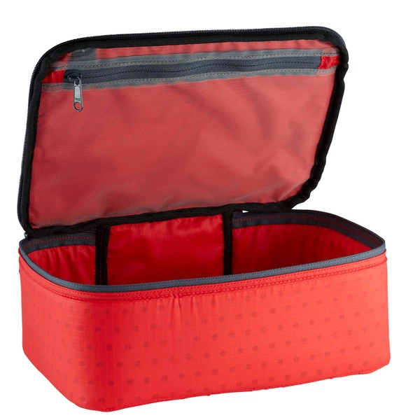 Die Padded Zip Pouch hat einen umlaufenden Reißverschluss und eine Schaumstoffpolsterung, die den Inhalt vor Stößen schützt. Um Gewicht zu sparen, ist diese perforiert. Das Netzfach im Deckel eignet sich gut für wichtige Teile wie beispielsweise Speichermedien.