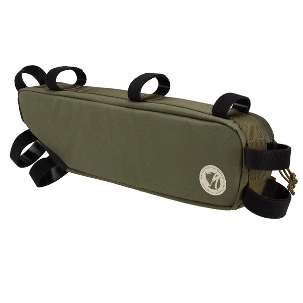Die S/F Frame Bag S hat einen langen RV, der hinten auch „ums Eck“ geht. Dadurch kannst du die Rahmentasche schön weit öffnen und kommst an den Inhalt sehr gut heran. Durch die Lage im Zentrum deines Fahrrades lassen sich hier gut schwere Ausrüstungsgegenstände unterbringen. Dank der sieben Klettlaschen kannst du die S/F Frame Bag S sicher im Fahrradrahmen fixieren.