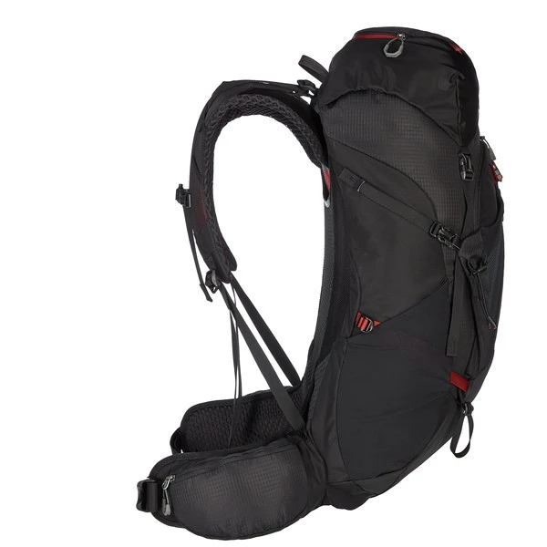 Über die u-förmige Frontöffnung hast du leichten Zugriff auf deine gesamte Ausrüstung. Im Deckel befindet sich eine Regenhülle für Regentage und in den geräumigen Außenfächern können neben Trinkflaschen auch sperrige Teile wie das Zeltgestänge verstaut werden. Besonders praktisch sind die großzügig geschnitten RV-Fächer auf dem Hüftgurt.