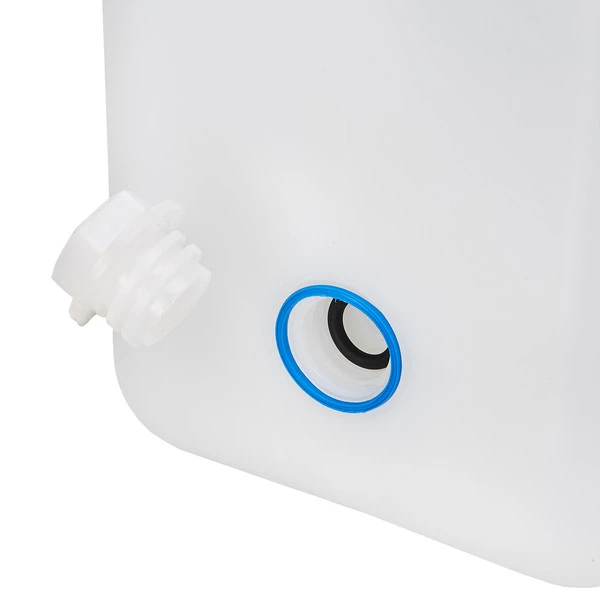 Das Polyethylen-Material ist sehr robust und UV-beständig. Diese Variante besitzt einen zweiten, kleinen Ausguss, um auch Trinkflaschen sicher zu befüllen. Der Verschlussstopfen am Boden kann entfernt werden, um ihn gegen einen optional erhältlichen Wasserhahn auszutauschen. So ist es möglich das Wasser fein dosiert dem Kanister zu entnehmen.