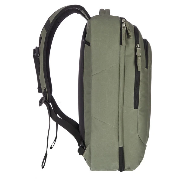 Das canvasartige 600D-Außenmaterial des Traveltopia Cabinpacks ist richtig schön robust. Zusätzlich ist es mit einer wachsartigen, wasserabweisenden Beschichtung imprägniert, die komplett PFC– und PVC-frei ist. Der wasserabweisende Reißverschluss ist reparaturfähig. Sollte er also in die Jahre kommen, kannst du ihn einfach reparieren lassen.