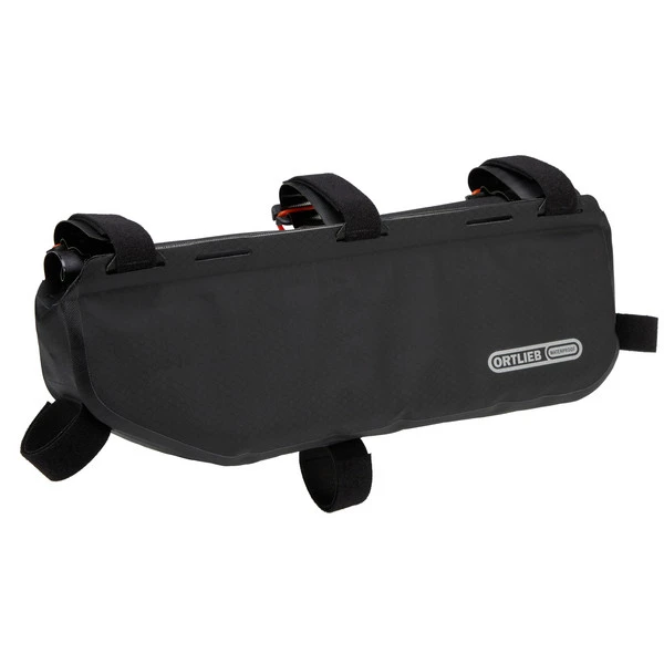 Die wasserdichte Tasche bietet dir 3 Liter Volumen. Sie hat einen schlanken Rollverschluss und individuell positionierbare Gurte mit Klettverschluss. Dank des Rollverschlusses hast du eine großzügige Öffnung zum Beladen der Rahmentasche. Die Befestigungsriemen für das Oberrohr tragen zugleich die orangen elastischen Laschen, mit denen du den Rollverschluss schließt. Das ist durchdacht, robust und langlebig. Das Material ist Ortlieb-typisch robust und abriebfest – und auch PVC-frei. Das Frame-Pack RC Toptube 3L ist auch für Carbon-Rahmen geeignet.