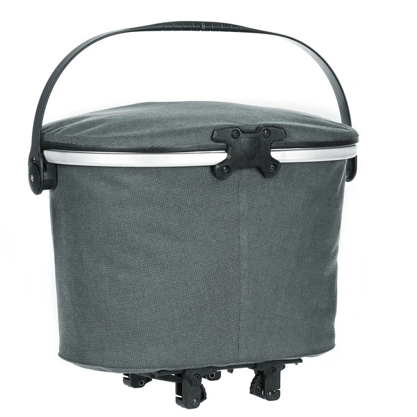 Für deinen Einkauf kannst du den Korb kinderleicht an deinem Gepäckträger befestigen und auch wieder abnehmen. Der Tragegriff ist klappbar und selbst bei randvoll gefülltem Korb angenehm zu greifen. Dein Portemonnaie findet seinen Platz in der RV-Innentasche. Der flexible Deckel erlaubt dir ein schnelles Öffnen des Korbes.
