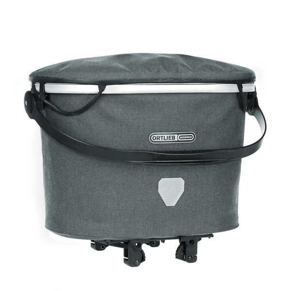 Retro-Charme, kombiniert mit robustem Cordura und dem Top-Lock Befestigungsadapter von Ortlieb: Dieser Fahrradkorb ist an viele Gepäckträger anpassbar, fix montierbar und genauso fix wieder abnehmbar.