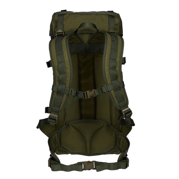 Die herausnehmbare PE-Rückenplatte stabilisiert den Rucksack bei schwerer Beladung. Die großzügig gepolsterten, thermogeformten Schultertragegurte und Hüftflossen sorgen für den nötigen Komfort, auch bei hoher Belastung. Die satte Polsterung ist mit geschlossenzelligem Schaumstoff ausgeführt. Die Länge des Hüftgurtes ist von 70 bis 140 cm einstellbar und bietet eine optimale Passform für einen Hüftumfang von ca. 80-110 cm.