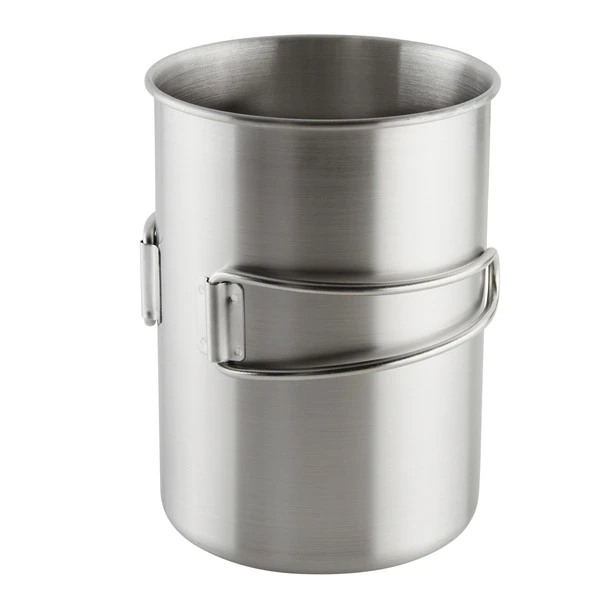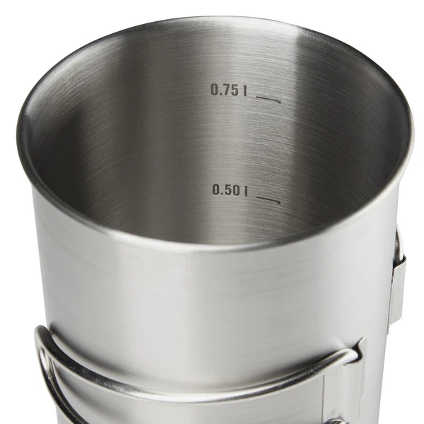 Großer Becher mit 850 ml Volumen, den du dank der robusten Ausführung auch als Topf verwenden kannst. Die klappbaren Handgriffe reduzieren das Packmaß auf ein Minimum.