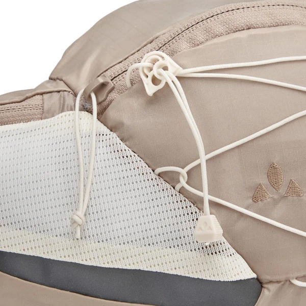 Der Bauchgurt ist schön breit und hat einen Klett- und einen Blitzverschluss, sodass nichts verrutscht. Zudem ist das Uphill Hip Pack 2 auf der Rückseite aus luftigem Mesh. Bei schweißtreibenden Abschnitten ist also für gute Belüftung gesorgt. Vier Fächer und eine Front-Kordel bieten flexible Organisationsmöglichkeiten.
