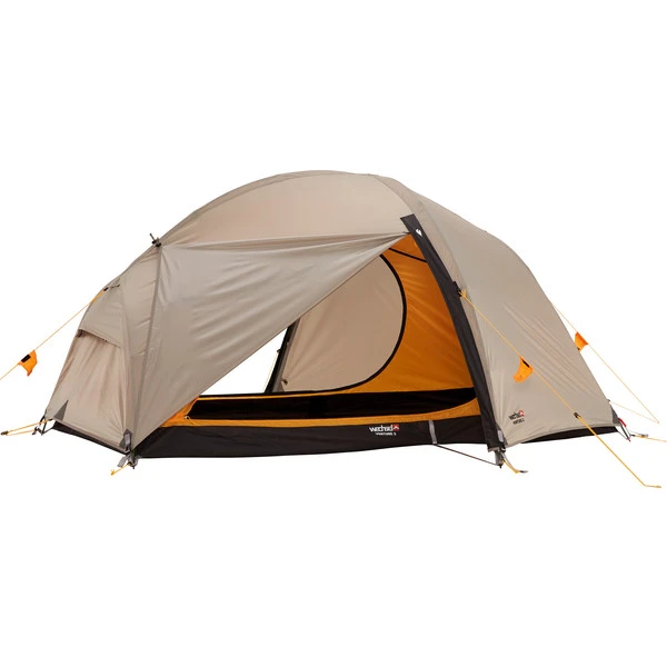 Das Venture 2 bietet dir trotz der kompakten Bauweise ausreichend Platz. In den Apsiden kannst du Gepäck und Schuhe verstauen. Die Liegelänge ist durch die steil aufsteigenden Wände auf voller Länge nutzbar. Diese Konstruktion verhindert auch, dass du das Innenzelt mit dem Kopf- oder Fußteil gegen das Außenzelt drückst.