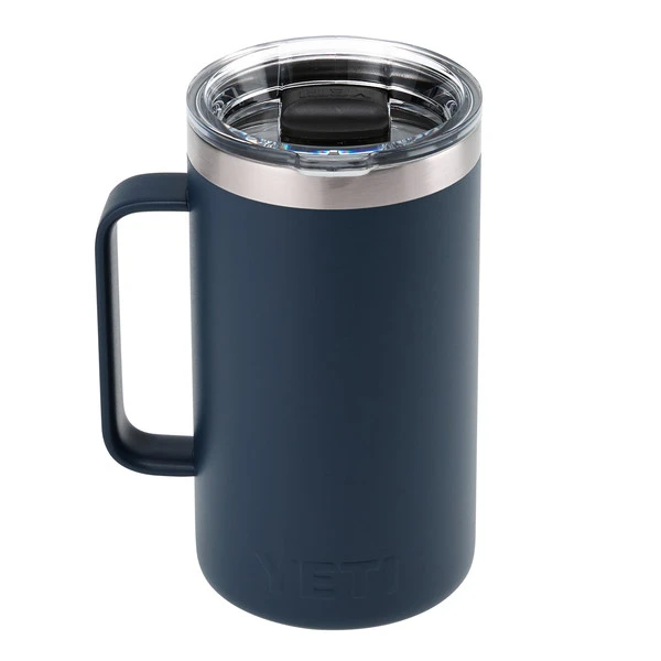 Schlanker und hoher Thermobecher mit großem Fassungsvermögen von rund 700 ml. Hergestellt aus 18/8 Edelstahl mit Vakuumisolierung und ausgestattet mit einem großzügig bemessenem Henkel.